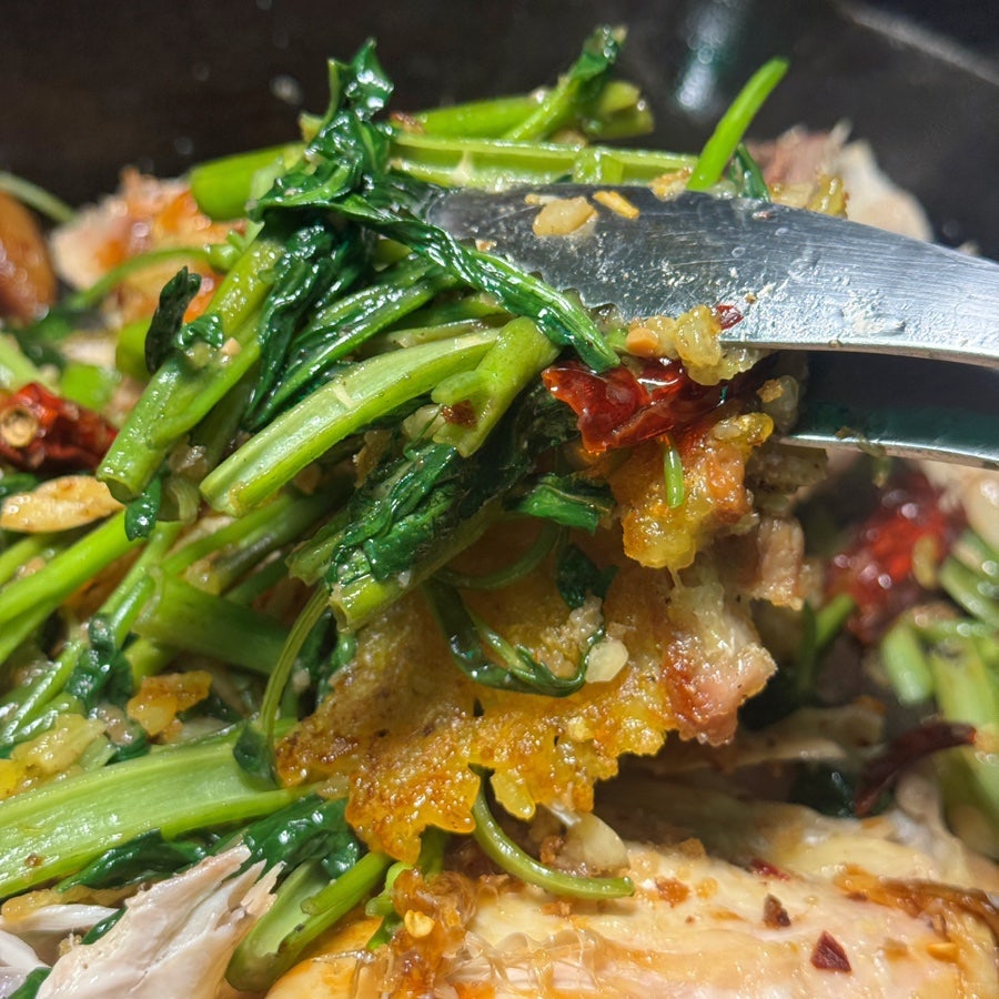 닭이랑 누룽지랑 공심채가 잘어울려서